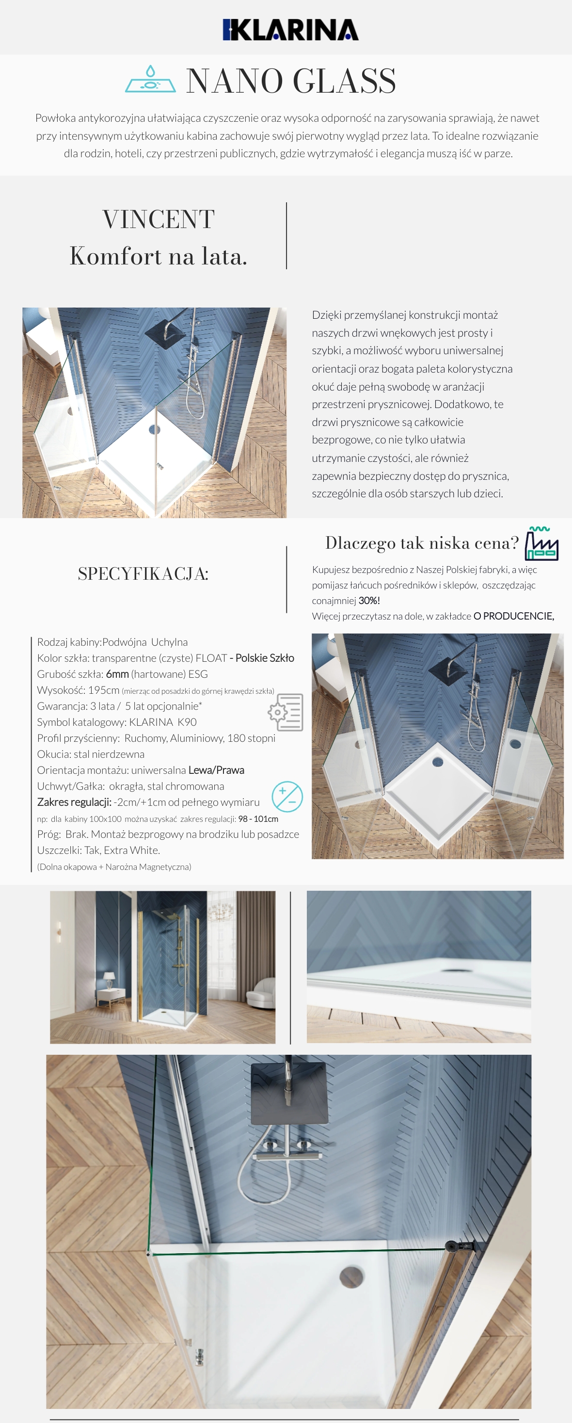 Kabina Narożna Uchylno-Składana VINCENT K90